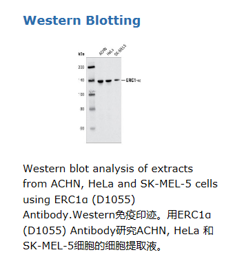 Polyclonal antibodies are produced by immunizing animals with a synthetic peptide corresponding to residues at the carboxy terminus of human ERC1 protein, specific for the α isoform. Antibodies were purified by peptide affinity chromatography.Background