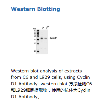 Cyclin D1 Antibody detects endogenous levels of cyclin D1. It does not cross-react with other family members.