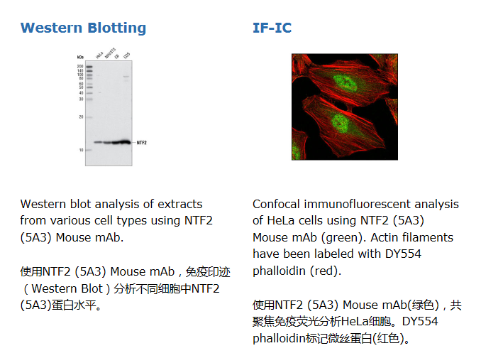 NTF2 (5A3) Mouse mAb detects endogenous levels of total NTF2 protein.