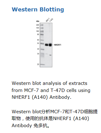 Polyclonal antibodies are produced by immunizing animals with a synthetic peptide surrounding Ala140 of human NHERF1. Antibodies are purified by peptide affinity chromatography.