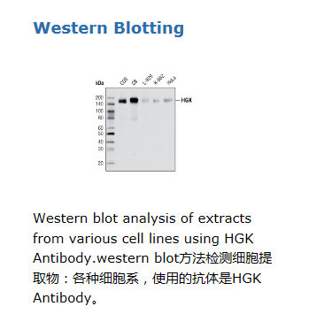 Polyclonal antibodies are produced by immunizing animals with a synthetic peptide corresponding to the sequence of human HGK. Antibodies are purified by protein A and peptide affinity chromatography.
