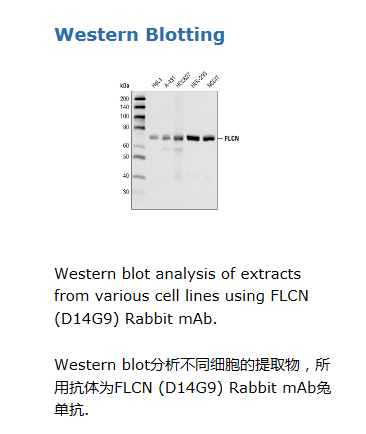 FLCN (D14G9) Rabbit mAb detects endogenous levels of total FLCN protein.
