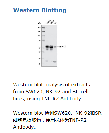 TNF-R2 Antibody detects endogenous levels of total TNF-R2 protein.