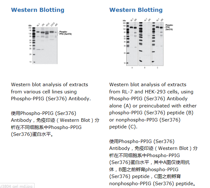 Polyclonal antibodies are produced by immunizing animals with a synthetic phosphopeptide corresponding to residues surrounding Ser376 of human PPIG. Antibodies are purified by peptide affinity chromatography.