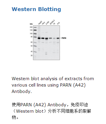 PARN (A42) Antibody detects endogenous levels of total PARN protein.
