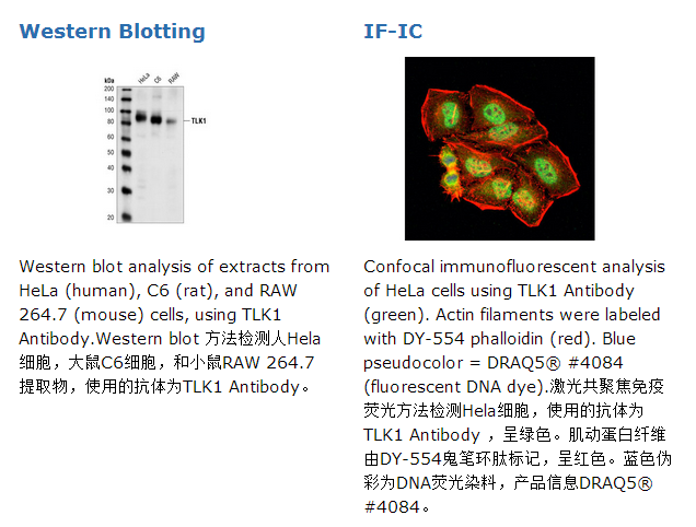 TLK1 Antibody detects endogenous levels of total TLK1.The antibody may cross-react with TLK2.