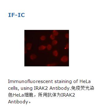 Polyclonal antibodies are produced by immunizing animals with a synthetic peptide corresponding to residues at the carboxy terminus of human IRAK2. Antibodies were purified by protein A and peptide affinity chromatography.