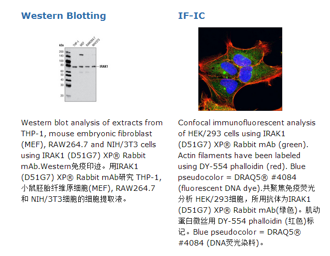 IRAK1 (D51G7) XP® Rabbit mAb detects endogenous levels of total IRAK1 protein.