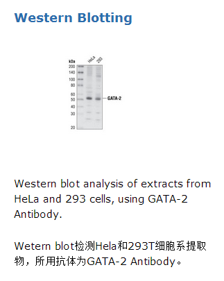 GATA-2 Antibody detects endogenous levels of total GATA-2 protein.