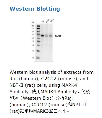 Polyclonal antibodies are produced by immunizing animals with a synthetic peptide corresponding to the sequence surrounding Cys514 of human MARK4. Antibodies are purified by protein A and peptide affinity chromatography.