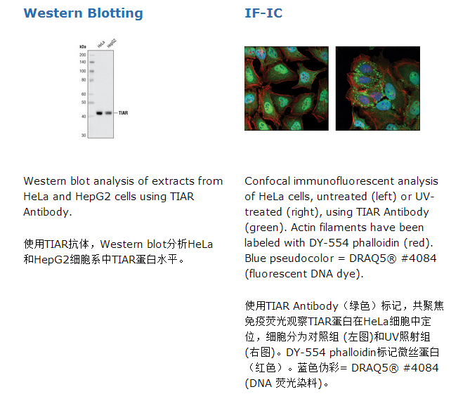TIAR Antibody detects endogenous levels of total TIAR protein.