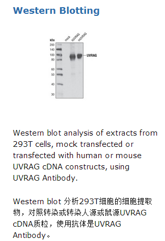 Polyclonal antibodies are produced by immunizing animals with a synthetic peptide corresponding to a region surrounding Leu555 of human UVRAG. Antibodies are purified by protein A and peptide affinity chromatography.