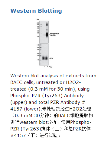 Phospho-PZR (Tyr263) Antibody recognizes endogenous levels of PZR protein only when phosphorylated at Tyr263. This antibody does not cross-react with other tyrosine kinase proteins.