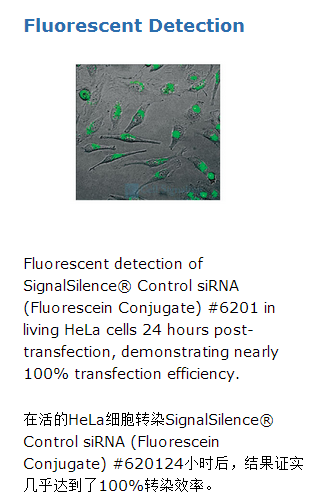 SignalSilence® eIF4E siRNA I from Cell Signaling Technology (CST) allows the researcher to specifically inhibit eIF4E expression using RNA interference, a method whereby gene expression can be selectively silenced through the delivery of double stranded RNA molecules into the cell. All SignalSilence® siRNA products are rigorously tested in-house and have been shown to reduce target protein expression by western analysis.