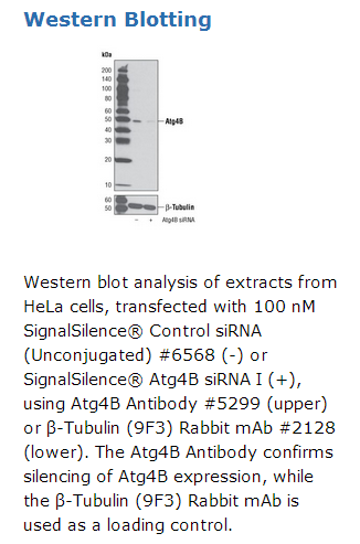SignalSilence® Atg4B siRNA I will inhibit human and mouse Atg4B expression.