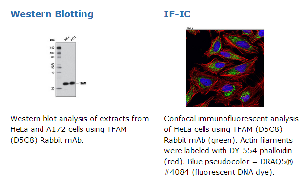 TFAM (D5C8) Rabbit mAb recognizes endogenous levels of total TFAM protein.