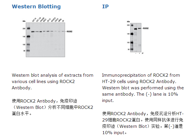Polyclonal antibodies are produced by immunizing animals with a synthetic peptide corresponding to residues near the carboxy terminus of human ROCK2 protein. Antibodies are purified by protein A and peptide affinity chromatography.