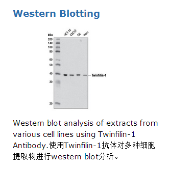 Polyclonal antibodies are produced by immunizing animals with a synthetic peptide corresponding to residues near the carboxy terminus of human twinfilin-1 protein. Antibodies are purified by protein A and peptide affinity chromatography.