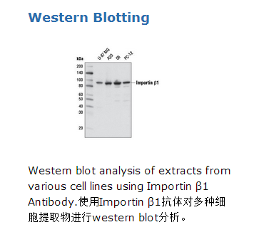 Importin β1 Antibody detects endogeneous levels of total importin β1 protein.