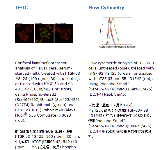 Phospho-Smad2 (Ser465/467)/Smad3 (Ser423/425) (D27F4) Rabbit mAb
