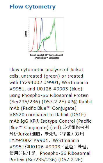 This Cell Signaling Technology antibody is conjugated to Pacific Blue™ fluorescent dye and tested in-house for direct flow cytometry analysis in human cells.