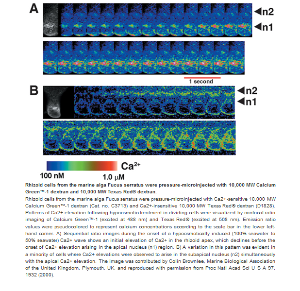 Molecular Probes® dextrans are conjugated to biotin or a wide variety of fluorophores, including seven of our Alexa Fluor® dyes (Molecular Probes dextran conjugates–Table 14.4) and are available in these nominal molecular weights (MW): 3,000; 10,000; 40,000; 70,000; 500,000; and 2,000,000 daltons.
