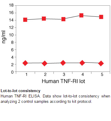 The TNF-RI (soluble) Human ELISA Kit is designed to quantify protein levels of human TNF-RI in serum, plasma, supernatant, and other biological fluids. TNF-RI is one of two cell surface receptors of tumor necrosis factors.