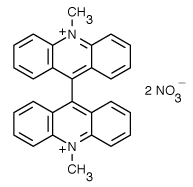 Our highly purified lucigenin is a fluorescent Cl- indicator that has excitation/emission maxima of 368/505 nm and whose fluorescence is quenched in the presence of Cl-. The dye is useful for determining Cl- concentrations in liposomes, reconstituted membranes or in extracellular medium but is not useful for intracellular measurements.