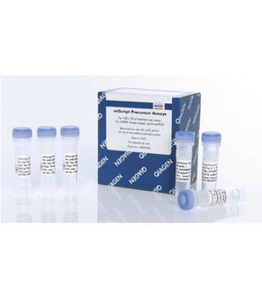 miScript Precursor Assays是miRNA前体的特异性正向和反向引物,配合miScript SYBR Green PCR Kit进行miRNA前体的real-time PCR。适合最新版本miRBase中的所有人类、小鼠和大鼠miRNAs,miRBase中的数据会不断更新。miScript II RT Kit可配合miScript HiFlex Buffer制备cDNA。cDNA作为模板,配合miScript Precursor Assay和miScript SYBR Green PCR Kit中的QuantiTect SYBR Green PCR Master Mix用于real-time PCR。