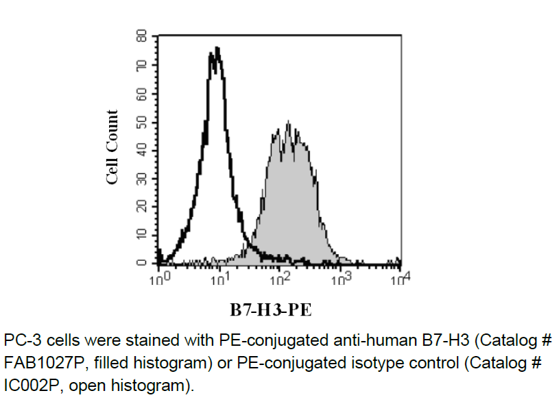 Phycoerythrin (PE)-conjugated mouse monoclonal anti-human B7-H3: Supplied as 25 μg of antibody in 1 mL saline containing up to 0.5% BSA and 0.1% sodium azide.