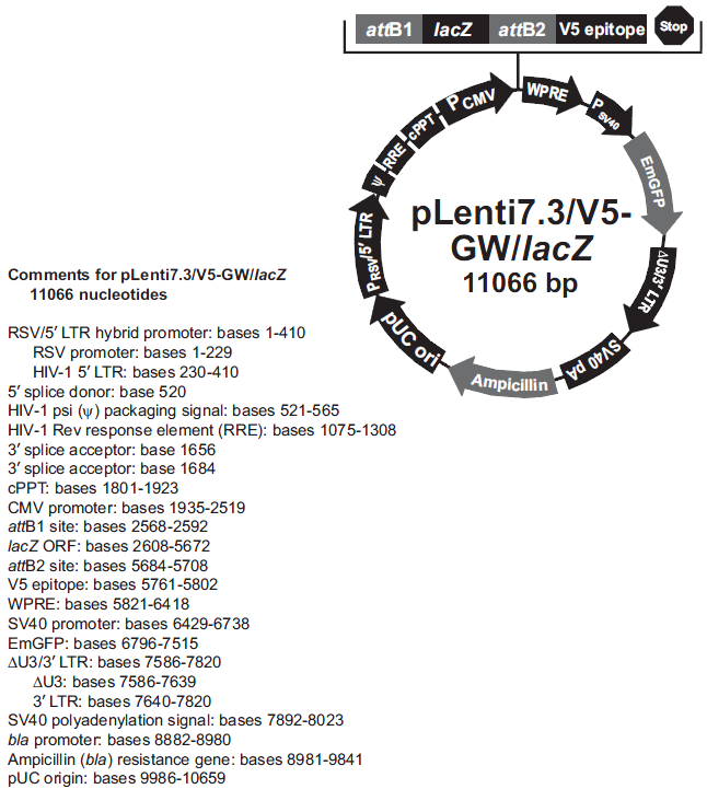 Kit Includes • pLenti7.3⁄V5-DEST™ Gateway® Vector box • One Shot® Stbl3™ chemically competent E. coli (C7373-03)