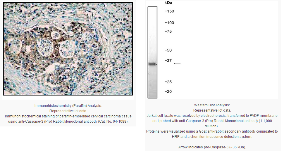 Specificity This antibody only detects pro-form (35kD) of caspase-3, and does not recognize any cleaved caspases.