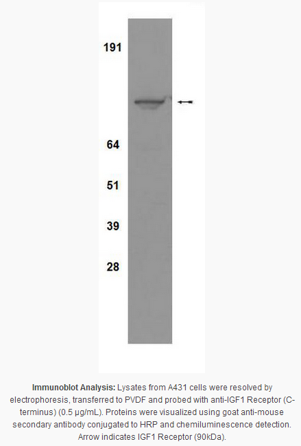Anti-IGF1 Receptor (C-terminus) Antibody, clone 7G11 detects level of IGF1 Receptor (C-terminus) & has been published & validated for use in ELISA & WB.