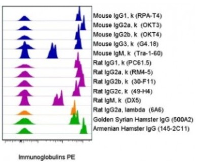 Description: OneComp eBeads react with antibodies of mouse, rat and hamster origin, and are immunoglobulin light chain-independent. The beads are spherical particles that can be stained with individual fluorochrome-conjugated antibodies for use as single-color compensation controls.