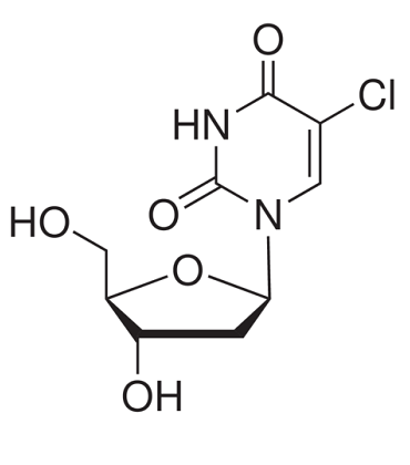 5-Chloro-2′-deoxyuridine (CldU) is used as a thymidine analogue to study the miscoding potential of hypochlorous acid damage to DNA and DNA precursors. When used with antibody based immunofluorescent imaging, 5-Chloro-2′-deoxyuridine incorporation may be used in protocols to identify sites of DNA replication. CldU may be used as a labeling substrate in conjunction with other halogenated uridine labeling substrates such as bromodeoxyuridine (BrdU) and/or iododeoxyuridine (IdU).