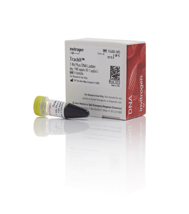 The TrackIt™ 1 Kb Plus DNA Ladder is suitable for sizing linear double-stranded DNA fragments from 100 bp–12 kb. The ladder is prepared from a plasmid containing repeats of a 1,000 bp DNA fragment. The 1,650 bp band is generated from pUC and all bands <1,000 bp are from lambda DNA. The TrackIt™ 1 Kb Plus DNA Ladder is formulated with two unique tracking dyes, Xylene Cyanol FF (XCFF) and tartrazine, that allow you to visually track DNA migration during electrophoresis and also indicate when maximum resolution is achieved. The tracking dyes do not obscure the visualization of DNA bands in the ladder as the dyes run outside the limits of most DNA bands in the ladder. Important features of this ladder: