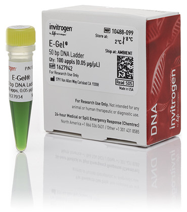The ready-to-use E-Gel® 50 bp DNA Ladder is premixed with loading buffer and is formulated specifically for maximum performance on E-Gel® EX gels as well as other E-Gel® precast gels. It is recommended for use with E-Gel® EX 2% gels and E-Gel® SizeSelect 2% gels.