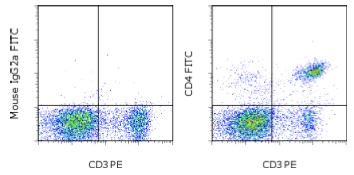 Description: The OX35 monoclonal antibody reacts with rat CD4. CD4 is a co-receptor which participates in signaling through the T cell receptor by making contacts with MHC class II expressed on antigen-presenting cells (APC). CD4 is expressed in the thymus by CD4+CD8+ "double-positive" and CD4+ "single-positive" thymocytes, and by CD4+ "helper" T cells in the periphery. CD4 is a cell-surface membrane glycoprotein which contains four extracellular immunoglobulin-like domains.