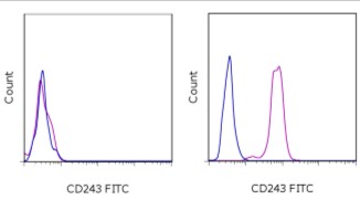 Description: This monoclonal antibody reacts with human Multidrug Resistant (MDR)-1, which is also known as P-glycoprotein (Pgp) and CD243. A 170-kDa transmembrane protein, MDR-1 is an ATP-dependent efflux pump for lipophilic compounds, including anti-cancer drugs. Expression of MDR-1 has been shown to correlate with multidrug resistance. In fact, tumor resistance to chemotherapy has been linked to MDR-1 expression in many cancers. MDR-1 is expressed in a variety of tissues, including the brain, kidney, liver, pancreas, and testes. Within the immune system, this molecule can be found on normal T, B, and natural killer cells, but not on monocytes.