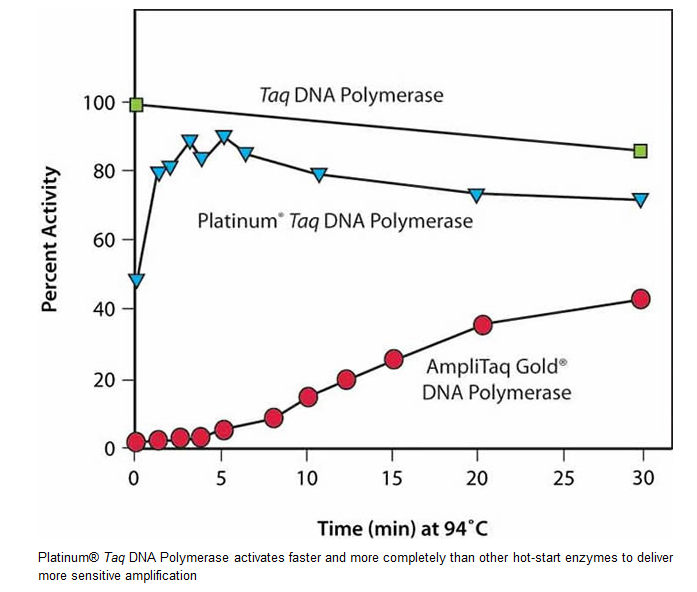 –Platinum® Taq DNA Polymerase: activates faster and more completely than other hot-start enzymes to deliver more sensitive amplification (Figure 1)