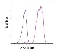 Description: The ICRF44 monoclonal antibody reacts with human CD11b, a 165 kDa adhesion molecule. CD11b associated with integrin β2 (CD18) is expressed on the surface of monocytes, granulocytes, activated lymphocytes and a subset of NK cells. CD11b is a receptor for intercellular adhesion molecule family members CD54, CD102 and CD50 as well as for iC3b. These adhesions are crucial in cell-cell and cell-matrix interactions.