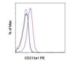 Description: The 13MOKA monoclonal antibody reacts with mouse CD213 alpha 1 (interleukin-13 receptor alpha 1, IL-13Ra1). CD213a1 is the low-affinity IL-13 receptor which mediates normal IL-13 inflammatory signaling. It has been shown that CD213a1 binds to IL-13 which then recruits CD124 (IL-4Rα) to stabilize the low-affinity interaction and form the active signaling complex. The CD213a1/CD124 complex can also serve as a receptor for IL-4, although the role of CD213a1 in this complex is poorly understood. CD213a1 is expressed on activated B and T cells and other cells.