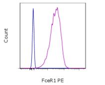 Description: The MAR-1 monoclonal antibody reacts with the Fc epsilon Receptor I alpha subunit, an IgE-binding subunit lacking signal-transducing ability. Fc epsilon RI alpha is expressed on mast and basophil cells and is up-regulated by the presence of IgE. Fc epsilon RI alpha forms a tetrameric complex with one beta and two gamma subunits. The beta and gamma subunits possess immunoreceptor tyrosine-based activation motifs (ITAM). The Fc epsilon RI complex plays an important role in triggering IgE-mediated allergic reactions.