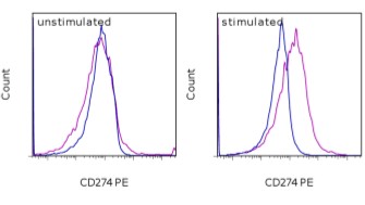 Description: The MIH1 monoclonal antibody reacts with human B7-H1, also known as PD-L1. B7-H1, a member of the B7 family, has a predicted molecular weight of approximately 40 kDa and belongs to the Ig superfamily. B7-H1 is expressed on a majority of leukocytes. B7-H1 is a ligand for PD-1. Interaction of PD-1 with either PD-L1 (B7-H1) or PD-L2 (B7-DC) results in inhibition of T and B cell responses. MIH1 is reported to be a blocking antibody.
