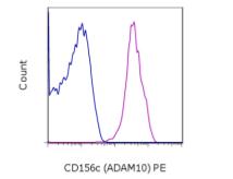 Description: This OV1F12 (1F12HE) monoclonal antibody reacts with human CD156c, which is also known as a disintegrin and metalloproteinase domain-containing protein (ADAM) 10. This type I transmembrane glycoprotein is expressed ubiquitously on hematopoietic and non-hematopoietic cell types. Studies demonstrate that CD156c expression is regulated by PAX2 in cancer cells. CD156c plays a critical role in hematopoiesis, including lymphocyte development, and autoimmunity by regulating the shedding and secretion of various receptors and chemokines, including Notch, CD23, CXCL16, and the IL-6R. Finally, deregulated CD156c expression has been associated with T-cell acute lymphoblastic lymphoma (T-ALL) and Alzheimer’s disease.
