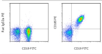Description: This SPRCL5 monoclonal antibody reacts with Mouse CD185. CD185, which is also known as C-X-C chemokine receptor 5 (CXCR5) and Burkitt lymphoma receptor 1 (BLR1), is a seven transmembrane G protein-coupled receptor originally identified in Burkitt’s lymphoma. In peripheral blood, CXCR5 is expressed on B cells, CD4+ T cells (but not Th1 or Th2 cells), as well as on a subpopulation of memory (CD45RO+) T cells. CXCR5+ circulating T cells are in a resting state and migrate to the lymph nodes due to expression of CCR7 and CD62L. In tonsil, CXCR5 is expressed on nearly all CD4+ cells along with CD45RO and such activation markers as CD69 and ICOS. Tonsillar CXCR5+ cells have been shown to induce antibody production when co-cultured with B cells, thus supporting their role in providing B cell help. Furthermore, this chemokine receptor plays a critical role in lymphocyte trafficking, in particular T cell migration into the B cell follicles of germinal centers in response to CXCL13, making CXCR5 an established marker of follicular helper T cells.