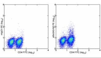 Description: The monoclonal antibody eBio3A3-N2 reacts with human IL-21, a potent stimulator of NK and cytolytic T cells. IL-21 is a 131 amino acid protein most closely related to IL-2 and IL-15. Expression is found in CD4+ cells upon activation. In addition to its effect on NK cells, IL-21 stimulates proliferation of B-cell stimulated by crosslinking of the CD40 antigen and stimulates the proliferation of bone marrow progenitor cells and the expression of the NK-cell marker CD56 in the presence of IL-15.