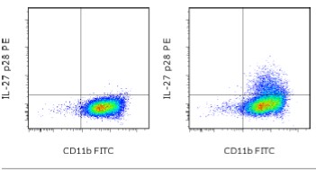 Description: This MM27-7B1 monoclonal antibody reacts with the p28 subunit of Interleukin-27 (IL-27), which is a member of the IL-12 family. IL-27 is a heterodimer of the subunits EBI3 (Epstein-Barr Virus Induced Gene 3), which is homologous to the p40 subunit shared by IL-12 and IL-23, and p28 (IL-30), which is homologous to p35. It is produced by activated dendritic cells and macrophages in response to TLR ligands and inflammatory cytokines.
