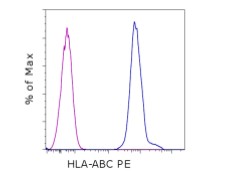 Description: The W6/32 monoclonal antibody reacts with the human major histocompatibility complex (MHC) class I, HLA-A, B, C. MHC class I antigens associated with beta 2-microglobulin are expressed by all human nucleated cells and are central in cell-mediated immune response and tumor surveillance. W6/32 mAb recognizes a non-polymorphic epitope shared among products of the HLA-A, B, and C loci and immunoprecipitates both 43 kDa and 11-12 kDa chains. Crossreactivity is also seen in baboon, rhesus and cynomolgus monkey.