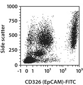 Clone HEA-125 recognizes the CD326 antigen, also known as human epithelial antigen (HEA), epithelial cell adhesion molecule (EpCAM), or epithelial-specific antigen (ESA), and is involved in cell adhesion. The CD326 antigen is broadly expressed on the basolateral surface of carcinoma and epithelial cells in tissues or on circulating tumor cells and cancer stem cells, but is not found on melanoma, neuroblastoma, sarcoma, lymphoma, leukemia cells, or normal fibroblasts.
